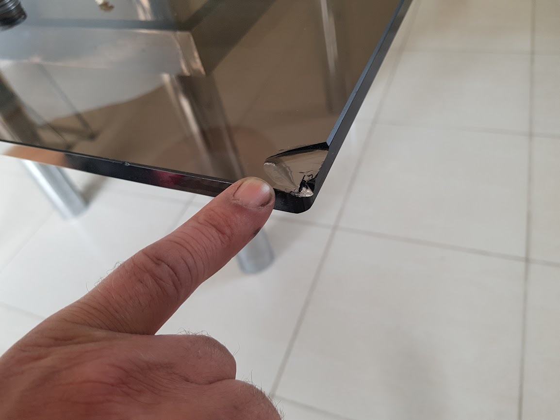Glasrand herstelling. Heb je een glazen keukentafel met een hoekje af? Het is mogelijk dat Autoglas Grimm dit kan herstellen voor u. Beschadigde rand van glazen balustrade, trappen, terras, glazen deuren...