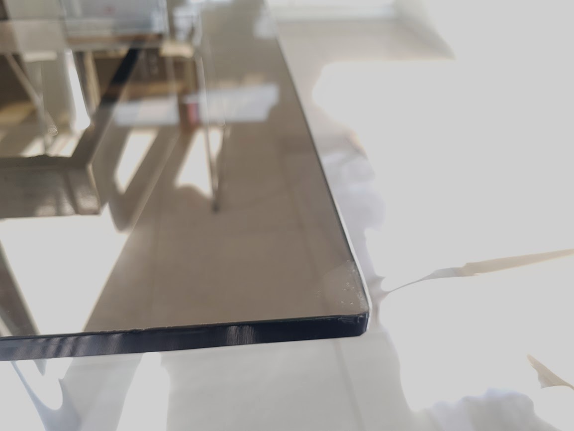 Glasrand herstelling. Heb je een glazen keukentafel met een hoekje af? Het is mogelijk dat Autoglas Grimm dit kan herstellen voor u. Beschadigde rand van glazen balustrade, trappen, terras, glazen deuren...
